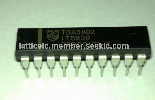 TDA9802 features: (1)Suitable for negative and positive vision modulation; (2)Gain controlled 3-stage IF amplifier; suitable for VIF frequencies up to 60 MHz; (3)True synchronous demodulation with active carrier regeneration (ultra-linear demodulation, good intermodulation figures, reduced harmonics and excellent pulse response); (4)Peak sync AGC for negative modulation, e.g. B/G standard; (5)Peak white AGC for positive modulation, e.g. L standard; (6)Video amplifier to match sound trap and sound filter; (7)AGC output voltage for tuner; adjustable take-over point(TOP); (8)AFC detector without extra reference circuit; (9)Alignment-free FM-PLL detector with high linearity; (10)Stabilizer circuit for ripple rejection and to achieve constant output signals; (11)5 to 8 V positive supply voltage range, low power consumption (300 mW at +5 V supply voltage).